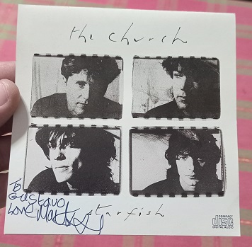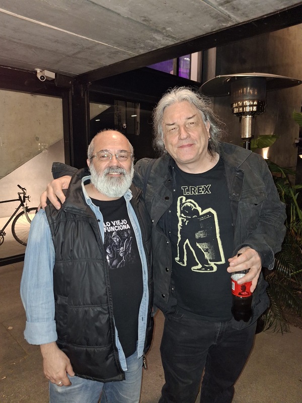 El 28 de noviembre, hubo un Meet & Greet en la disquería W Records, donde pudimos conocer a Marty. Un gran conversador y conocedor de la música (tiene en su casa en Portugal la friolera de 60.000 vinilos y 20.000 CDs, además de un cuarto lleno de guitarras). En la conversación que mantuvo con los que estábamos presentes, comentó su disgusto con las baterías electrónicas características de los ’80, su conocimiento de rock argentino (le encanta Artaud de Pescado Rabioso), su gusto por Los Shakers, que no le gusta la etapa de King Crimson con Adrian Belew en el canto. Para él, esa etapa cambió a la banda, casi convirtiéndola en una banda neoyorkina más que británica. Contó que, con The Church compartió escenario con Van Der Graaf Generator una vez en Canadá y como solista estuvo entre otros con The Cult. Hablamos de su disco preferido con The Church, The Blurred Crusade. Se compartió poco más de una hora que pareció mucho más y a la vez dejó gusto a poco, siempre en un excelente ambiente, cordialidad, humor y sencillez. Nota aparte, su disposición para autografiar los CCDs y vinilos de los que estábamos ahí. (En mi caso fueron 6. ¡Jeje!).