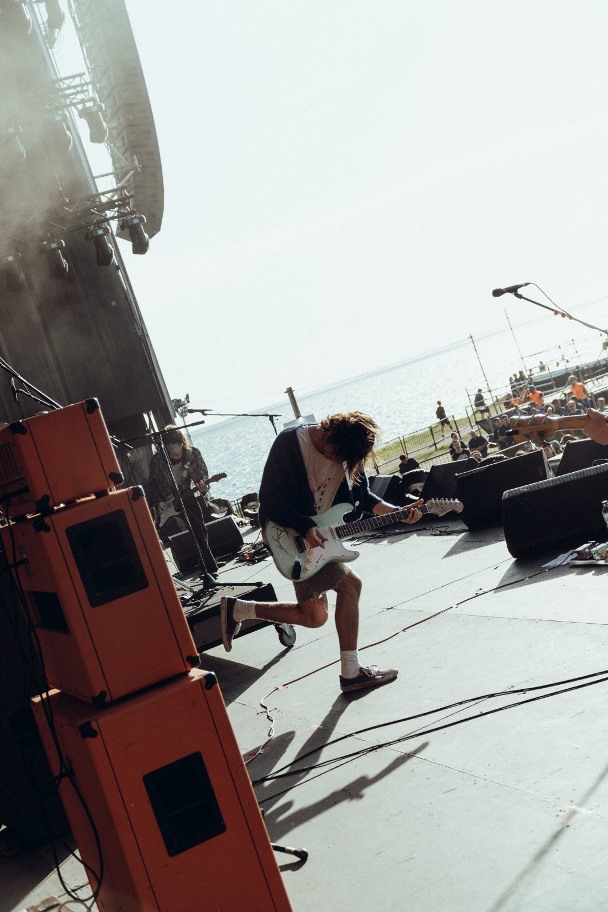 Joaco: La verdad no esperaba que fuera tan cálido como fue. O sea, los miembros de la banda nos sorprendieron. Como que nos integraron, estuvimos ahí pasando el rato con ellos, hablando, me cayeron bien. En cuanto a lo musical, no sé si están en la otra punta del espectro, pero sí están lejos de nosotros. Pero también hemos tocado con gente de bandas de nuestra movida que también están lejísimos de lo que hacemos. Si bien ellos están en un cierto punto de su carrera que están tocando en un espacio completamente distinto al nuestro, en escenarios enormes y para todo Uruguay, no siento que sea algo distante.