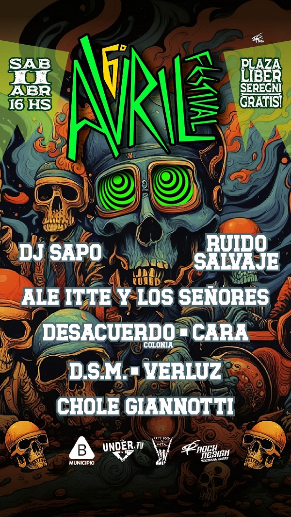 Ya estamos en el mes de abril, y como viene ocurriendo últimamente, es el momento para que se celebre el Avril Festival. Un toque autogestionado que está orientado a bandas que pertenecen a la escena under de nuestro rock nacional. La fecha de realización es el 11 de abril, en la Plaza Líber Seregni, a partir de las 16 horas con entrada libre.