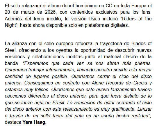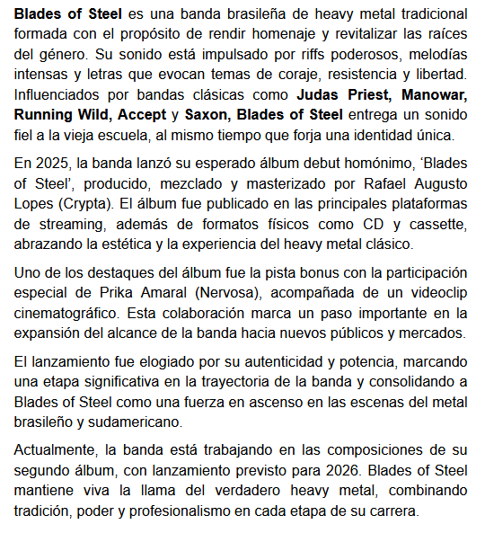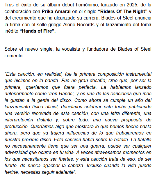 Blades Of Steel es una banda de metal brasileña que está encarando la grabación de su segundo álbum. La firma con un sello europeo contempla la reedición de su álbum debut. De mientras, la banda lanza un nuevo tema: “Hands of fire”. Compartimos.