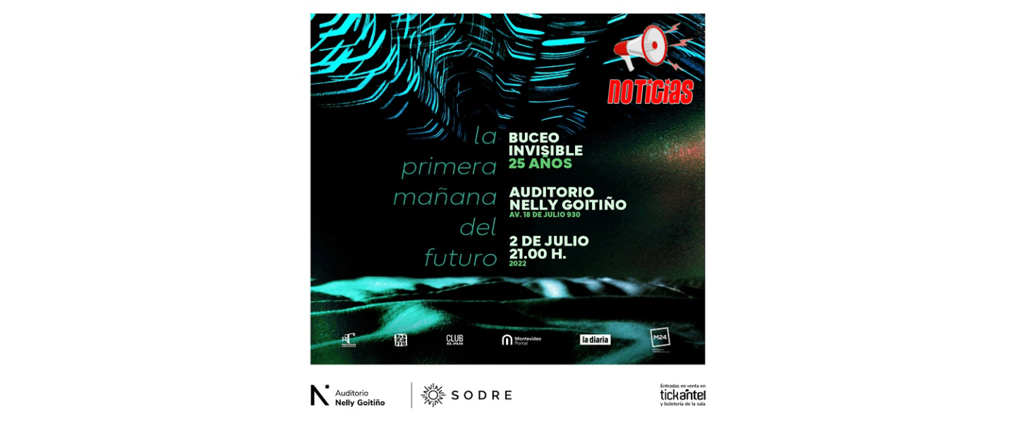 Buceo Invisible festeja sus 25 años el próximo 2 de julio. La presentación, denominada La Primera Mañana Del Futuro, se llevará a cabo en el Auditorio Nelly Goitiño a las 21 horas. Están todos invitados a participar.
