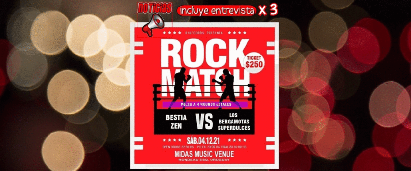 Rock Match es una nueva creación y propuesta del multifacético Gabriel Brikman, responsable de 01Records, que presenta la contienda. Una producción que ingeniosamente “enfrenta” a dos bandas en un duelo sobre el escenario de Midas Music. Ante tal iniciativa, nos vimos tentados a hacer la previa con tres entrevistas: las mismas preguntas para Nacho Delgado (Bestia Zen) y Chuck Paldorton (Los Bergamotas Superdulces) con respuestas picadísimas, y el complemento en las preguntas hechas a Brikman. Imperdible el artículo, como el mismo Rock Match del 4 de diciembre.