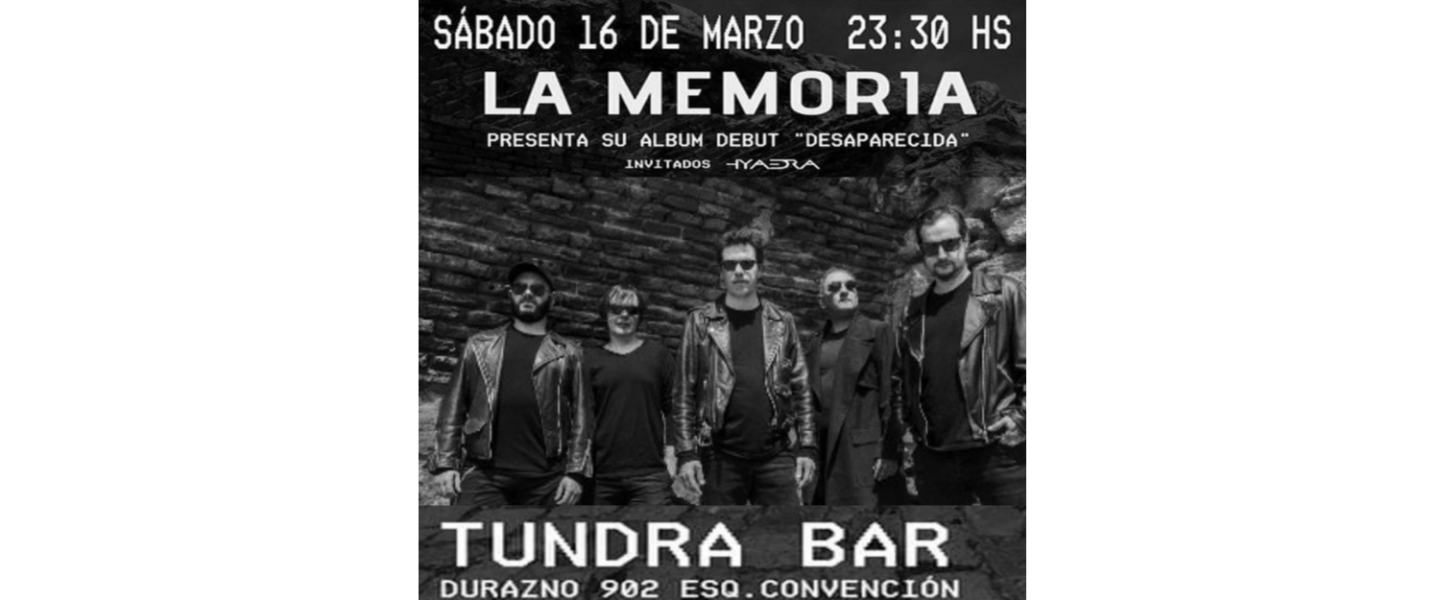 El próximo sábado 16 de marzo, La Memoria hará la presentación del disco debut Desaparecida. El show tendrá lugar en Tundra Bar (Durazno 902 esquina Convención) y contará con Hyaedra como banda invitada.