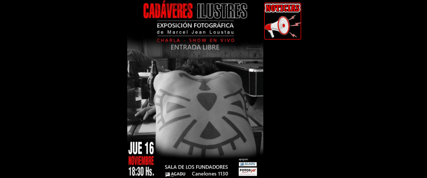 El próximo jueves 16 de noviembre en la Sala de los Fundadores de AGADU (Canelones 1130) se inaugurará la exposición fotográfica que Marcel Jean Loustau ofrecerá sobre Cadáveres Ilustres, histórica banda de nuestro rock nacional. La cita será a las 18:30 horas y la exposición se extenderá hasta el 22 de diciembre.