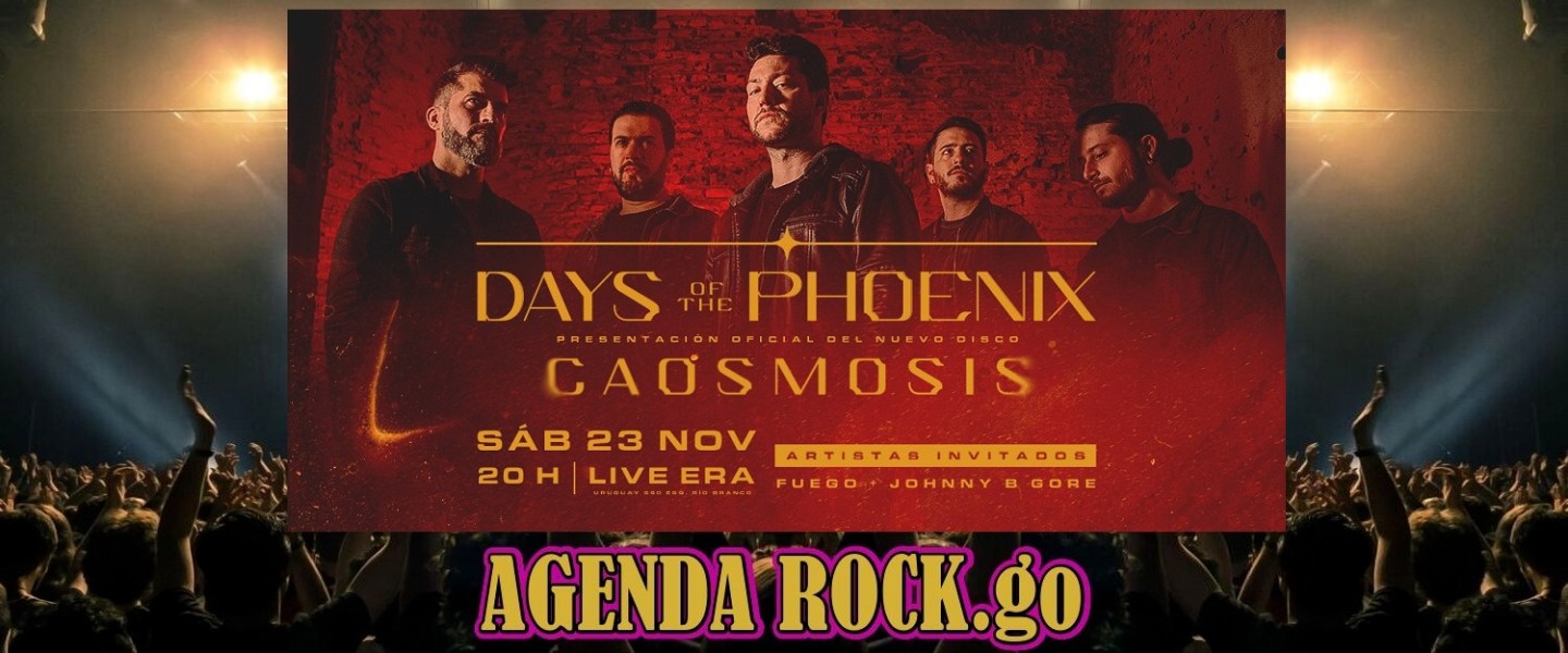 Days Of The Phoenix se prepara para una noche inolvidable en Live Era, donde presentará su aclamado nuevo disco Caosmosis el próximo sábado 23 de noviembre. Este álbum marca un hito en la carrera de la banda, que ha impactado a la escena del metal con un disco que lleva al oyente por una experiencia narrativa y musical única.