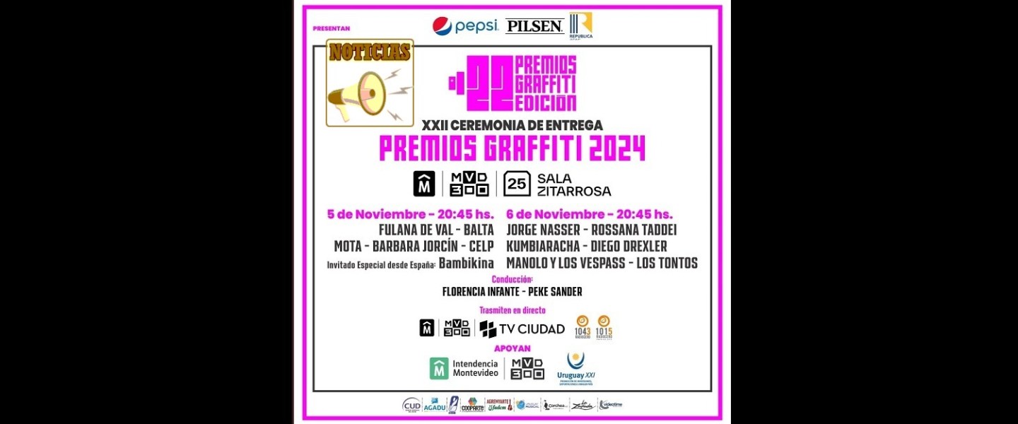 Ayer 5 de noviembre se completó la entrega de Premios Graffiti 2024 en su 22° edición. Nuevamente la Sala Zitarrosa fue el lugar elegido para esta etapa. Dentro de los premios entregados al rock específicamente, estuvieron las bandas Eté & Los Problems por mejor single de rock, Mandrake y Los Druidas como compositor del año, Mota como banda del año, Flor Sakeo como solista femenina del año y Pecho e’ Fierro por mejor EP. Todos los ganadores, detallados a continuación.