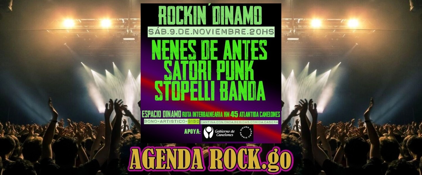 Rockin’ Dinamo es un show en vivo que se llevará a cabo el sábado 9 de noviembre a partir de las 20 horas en Espacio Dinamo (Km. 45 de la Ruta Interbalnearia). Participarán las bandas Nenes De Antes (banda tributo a Divididos), Satori Punk y Stopelli Banda. La entrada tiene un costo de $150, y habrá una cantina imperdible. ¡Rock, punk y funk para gozar!